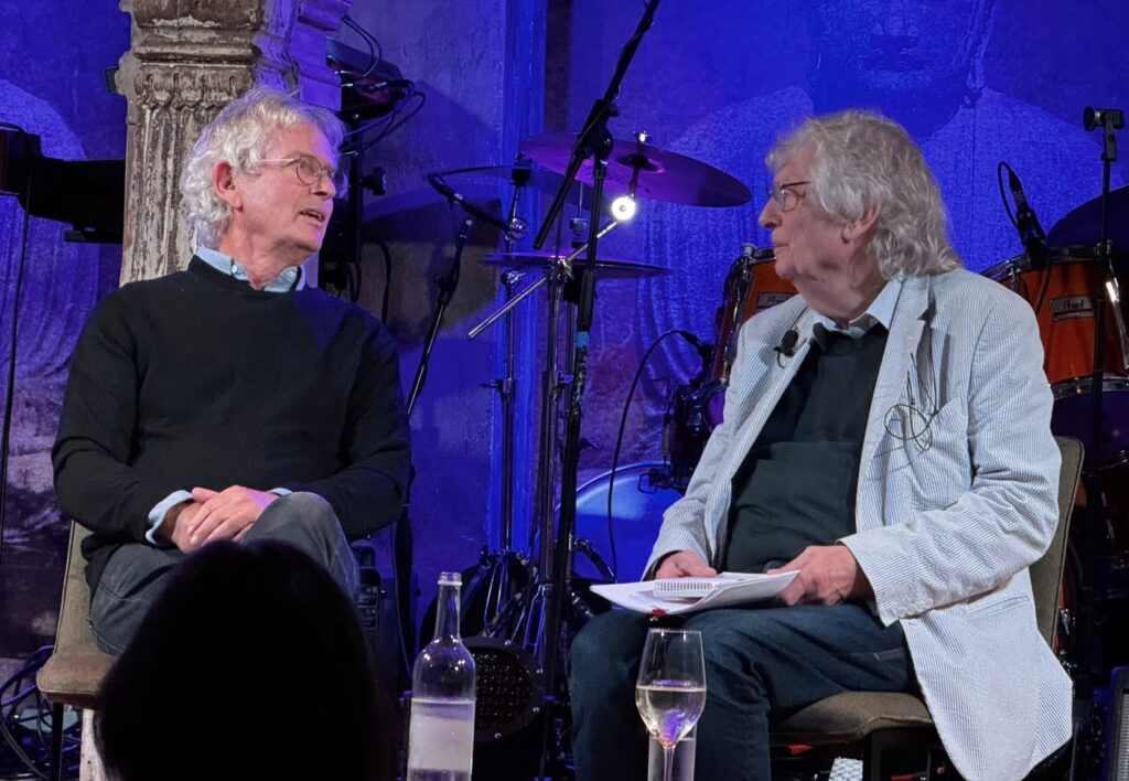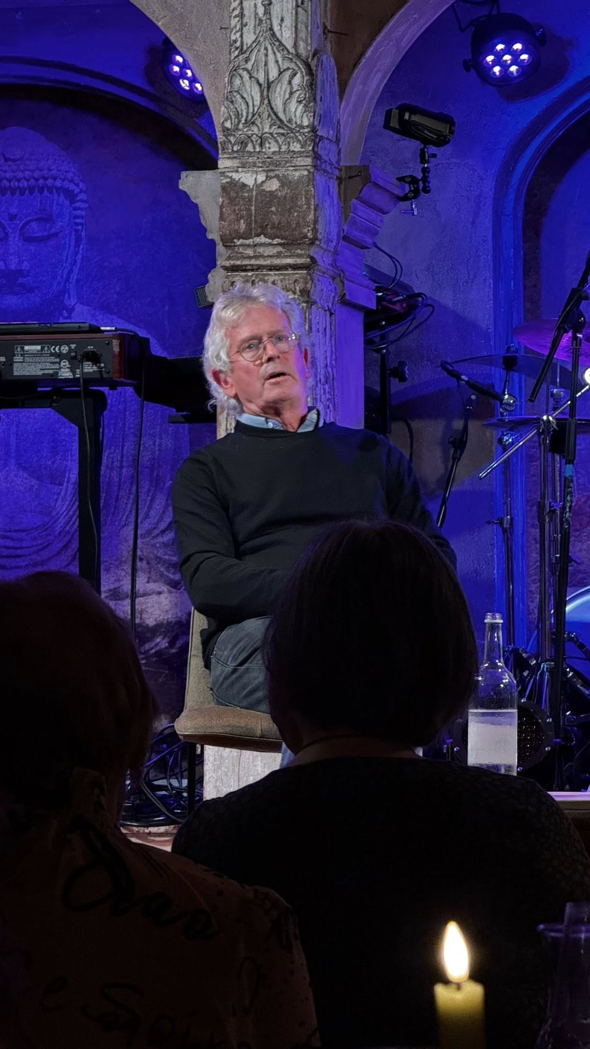 Orador: Buenas noches. Buenas noches a todos. En nombre de todos nosotros aquí en Trading Boundaries, me gustaría darles la bienvenida. Así que hoy están a punto de acompañarnos en el escenario dos leyendas, realmente, cada uno en su propio género. En primer lugar, Chris Welch. Muchos de ustedes habrán leído sus palabras. Tal vez hayan leído alguno de sus 40 libros, o quizá hayan leído sus columnas que han aparecido en Melody Maker desde el 64′, o en muchísimos otros medios desde entonces. Él realmente sabe lo que hace, y sinceramente es un honor tenerlo aquí esta noche.